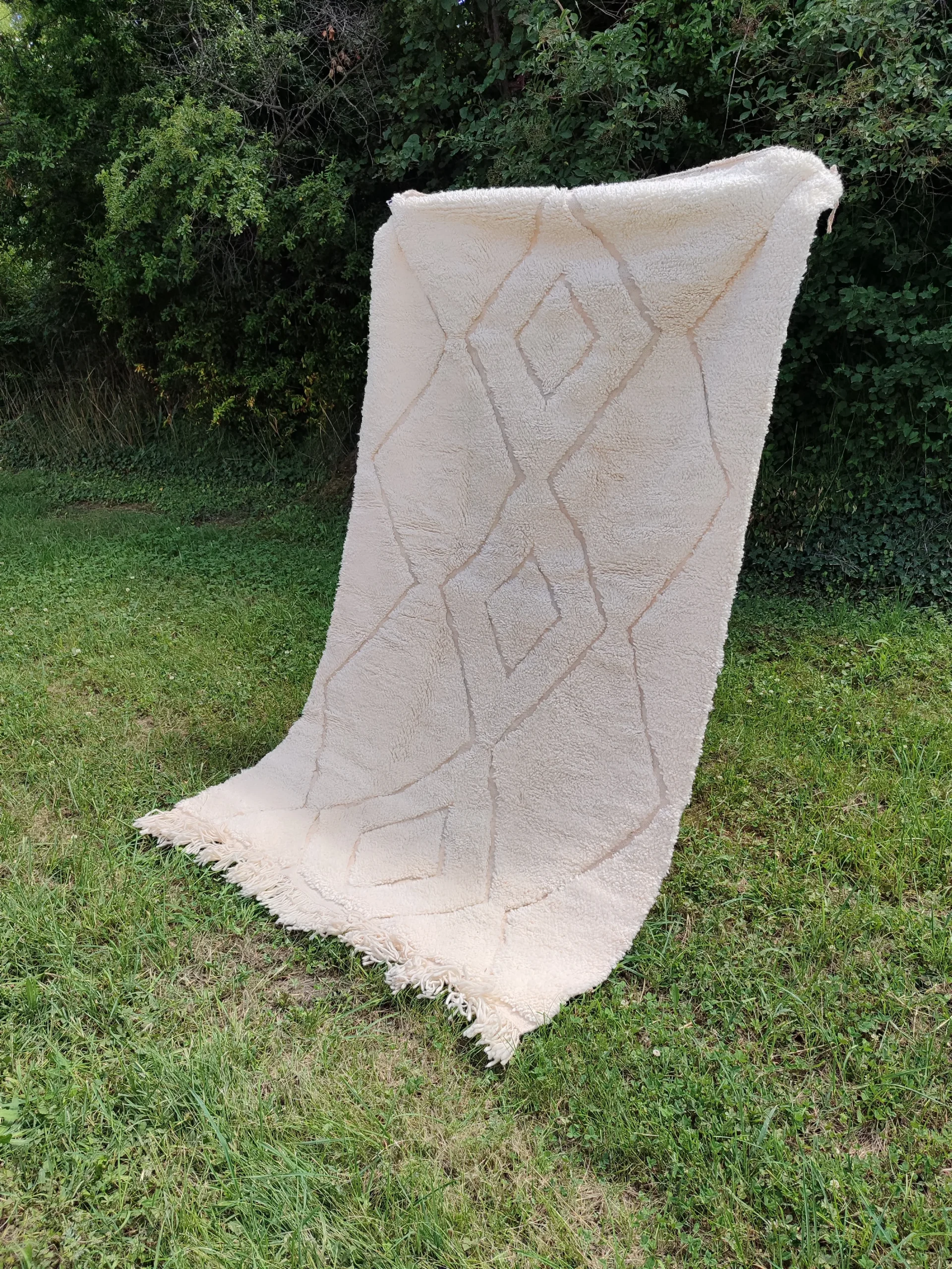 Our Ethnic Carpets & Rugs showcase the exceptional quality of 100% natural wool sourced directly from indigenous sheep breeds of North Africa’s Atlas Mountains. This premium high-altitude wool is renowned for its exceptional durability, natural lanolin content, and distinctive long fibers that result in carpets of extraordinary resilience and character. Following ancestral traditions, this wool is hand-processed by Berber women who wash, card, and spin it using techniques passed down through countless generations. The wool-on-wool technique refers to the authentic construction method where both the foundation (warp and weft) and the pile are made entirely of wool—unlike commercial carpets that use cotton or synthetic backings. This traditional approach creates a substantially more durable and insulating carpet with natural temperature-regulating properties. The wool’s inherent resilience allows these carpets to maintain their beauty for decades, developing a rich patina that enhances their character over time while naturally resisting stains and dirt.