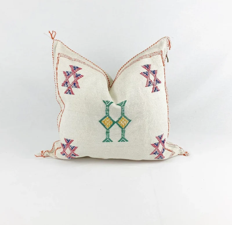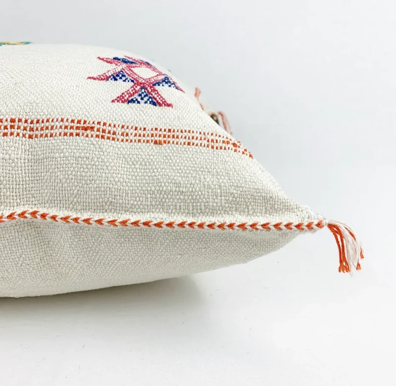 The creation of these handwoven cushions begins with the careful preparation of cactus silk threads, which are meticulously measured and arranged on traditional wooden looms. Using techniques passed down through generations, master Moroccan weavers work entirely by hand, incorporating symbolic patterns that carry cultural significance beyond mere decoration. Each geometric motif represents an element of Berber visual language – diamonds symbolize protection, zigzags represent water and life, while crosses mark the four directions. The artisanal process requires exceptional patience and precision, with each cushion taking several days to complete. After weaving, craftspeople hand-finish each piece with expert cutting and assembly, installing hidden zippers that allow for practicality without compromising the authentic aesthetic. This labor-intensive approach ensures no two cushions are exactly alike.
