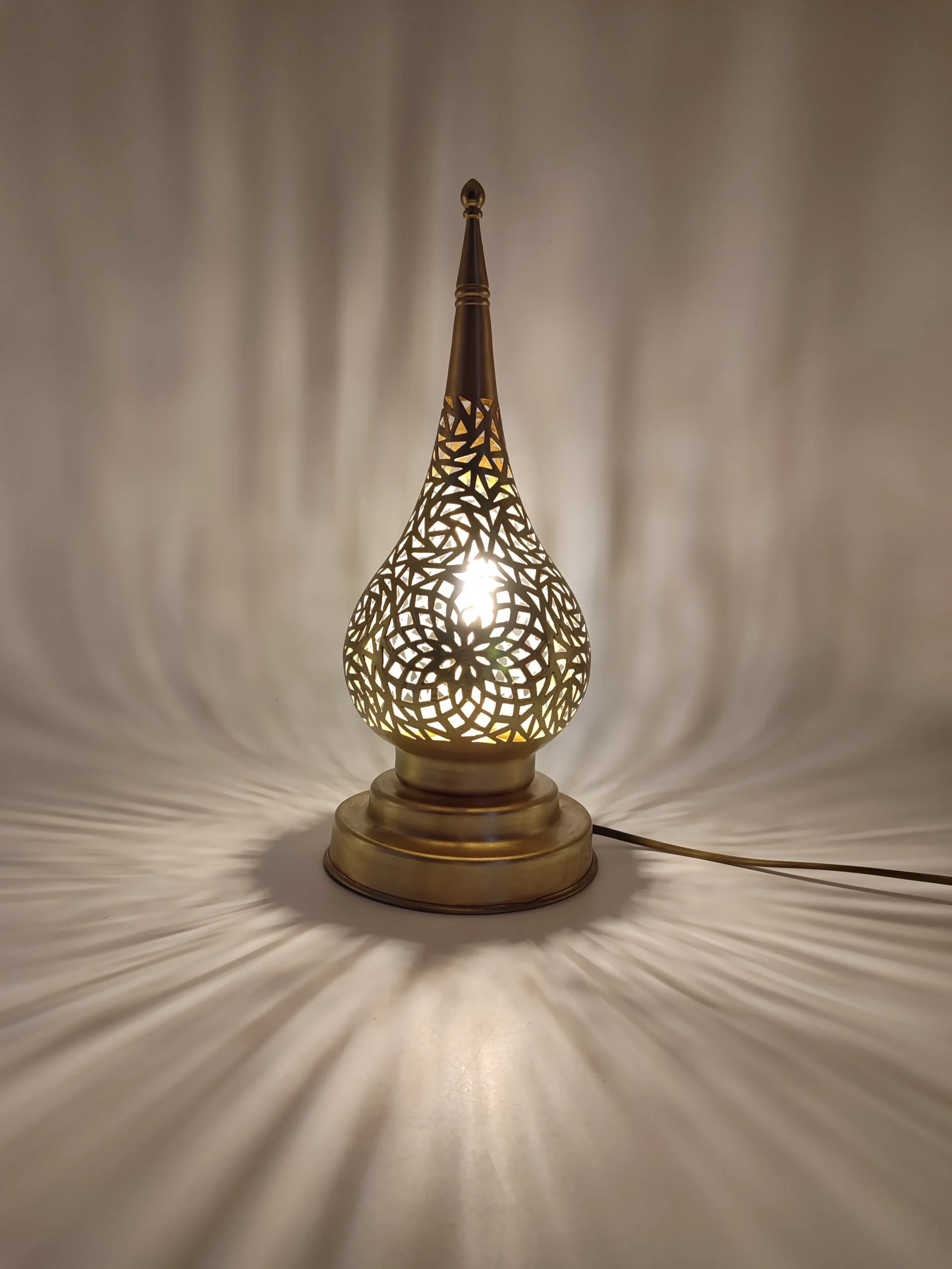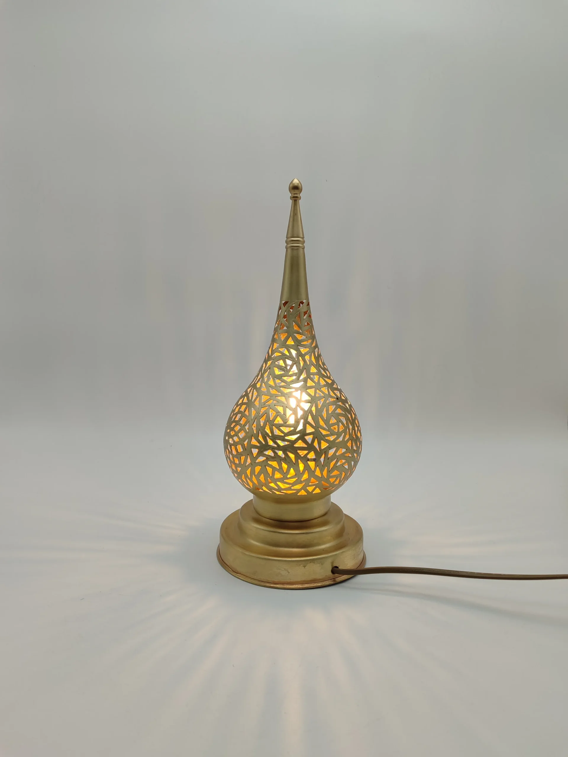 Our Magical Lamps embody the essence of Andalusian artistic tradition, drawing heavily from the rich tapestry of Islamic geometric designs that symbolize the infinite nature of Allah. The intricate patterns feature the characteristic eight-pointed star motifs and complex arabesque designs that have adorned palaces and mosques throughout North Africa and Andalusia since the 14th century. This Moorish-inspired aesthetic celebrates mathematical precision and spiritual symbolism through carefully calculated geometric forms, creating a mesmerizing play of light and shadow. The distinctive teardrop silhouette pays homage to the architectural elements found in historic medinas, while the ornate perforations reflect the sophisticated artistic legacy of craftsmen who transformed utilitarian objects into extraordinary works of illuminated art.
