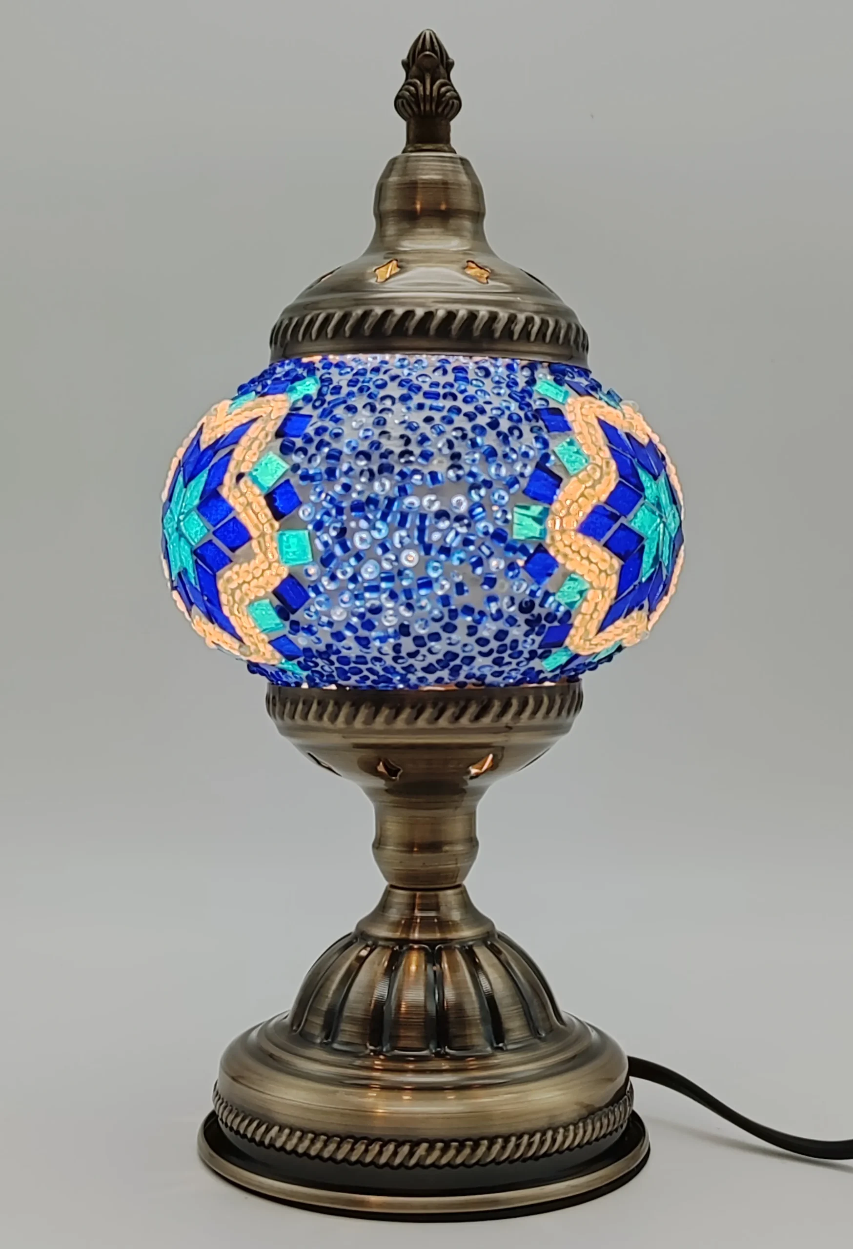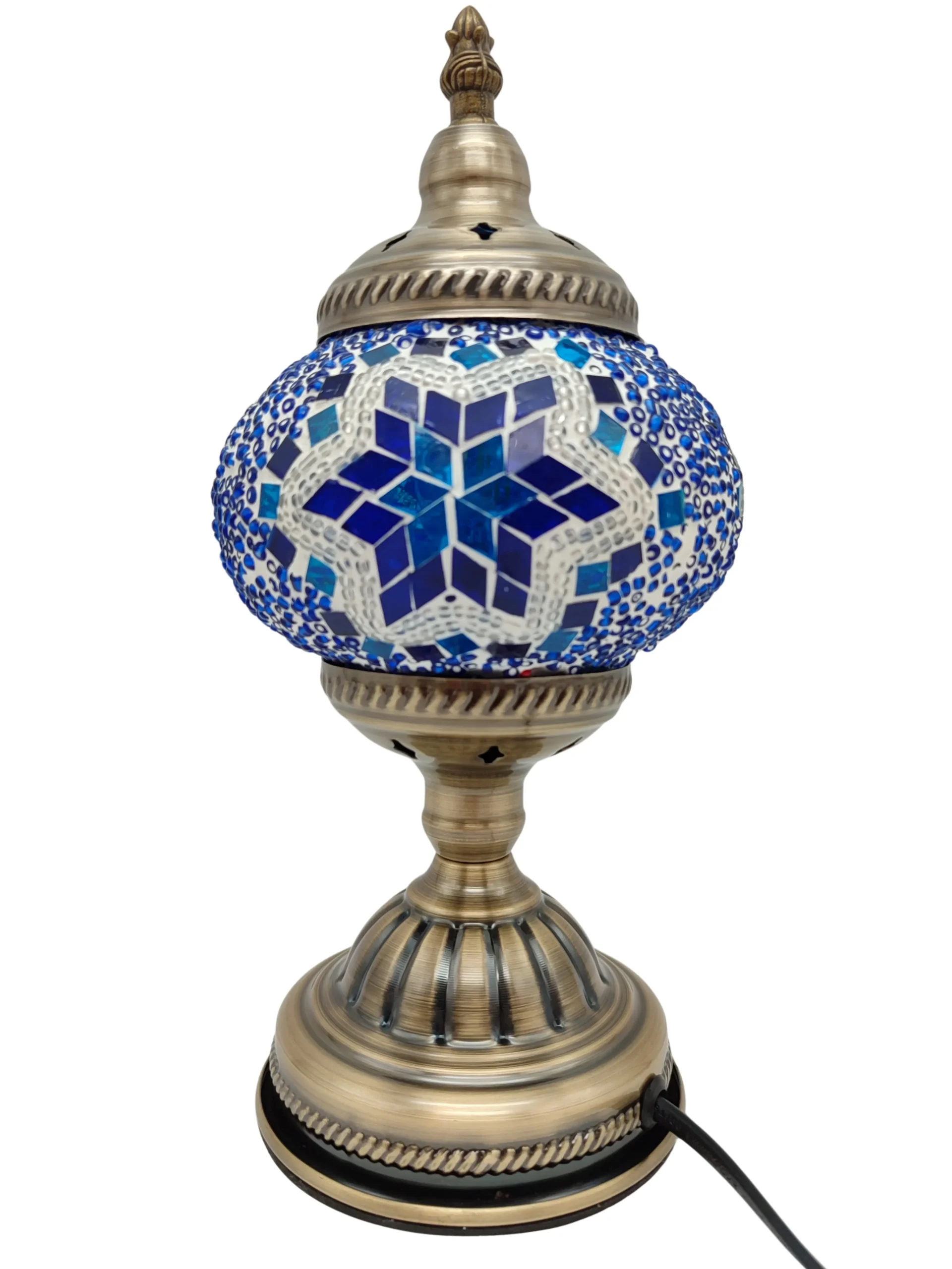 These extraordinary Turkish mosaic lamps showcase the timeless beauty of hand-cut glass, meticulously arranged in traditional patterns that reflect centuries of Ottoman artistic heritage. Unlike mass-produced lighting, each lamp features hundreds of individually placed glass pieces—carefully cut, shaped, and assembled by master craftsmen. The vibrant blues, turquoise, and golden hues are achieved through traditional glass-coloring techniques passed down through generations of Turkish artisans. The mosaic glass globe is complemented by ornate brass or bronze metalwork with intricate detailing—from the decorative base to the elaborately patterned cap—creating a harmonious balance between transparency and solidity. When illuminated, these materials transform, as light filters through the colored glass, casting enchanting patterns that dance across your walls and ceiling. This interplay between light and crafted materials creates an ambiance impossible to replicate with modern manufacturing methods, offering not just illumination but a genuine artistic experience rooted in cultural tradition.